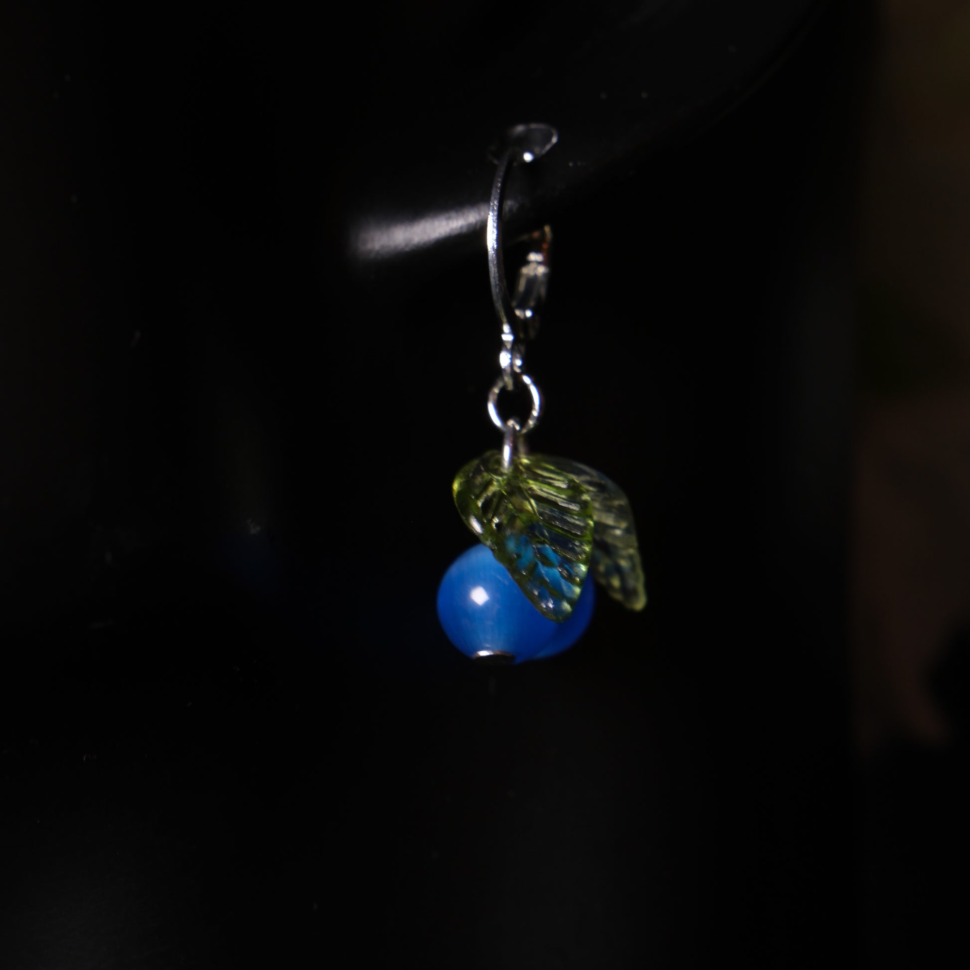 Auskarai su mėlynėmis ir žaliais lapeliais