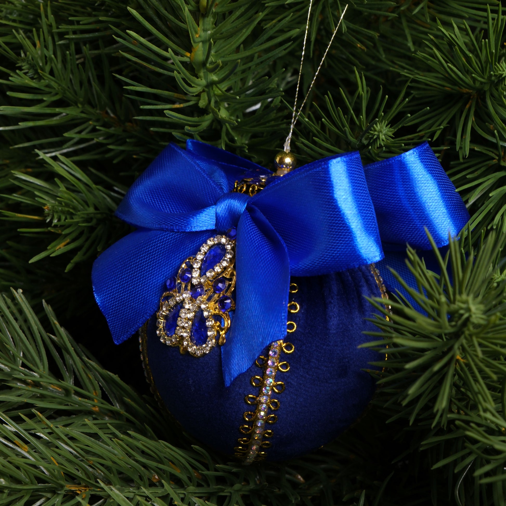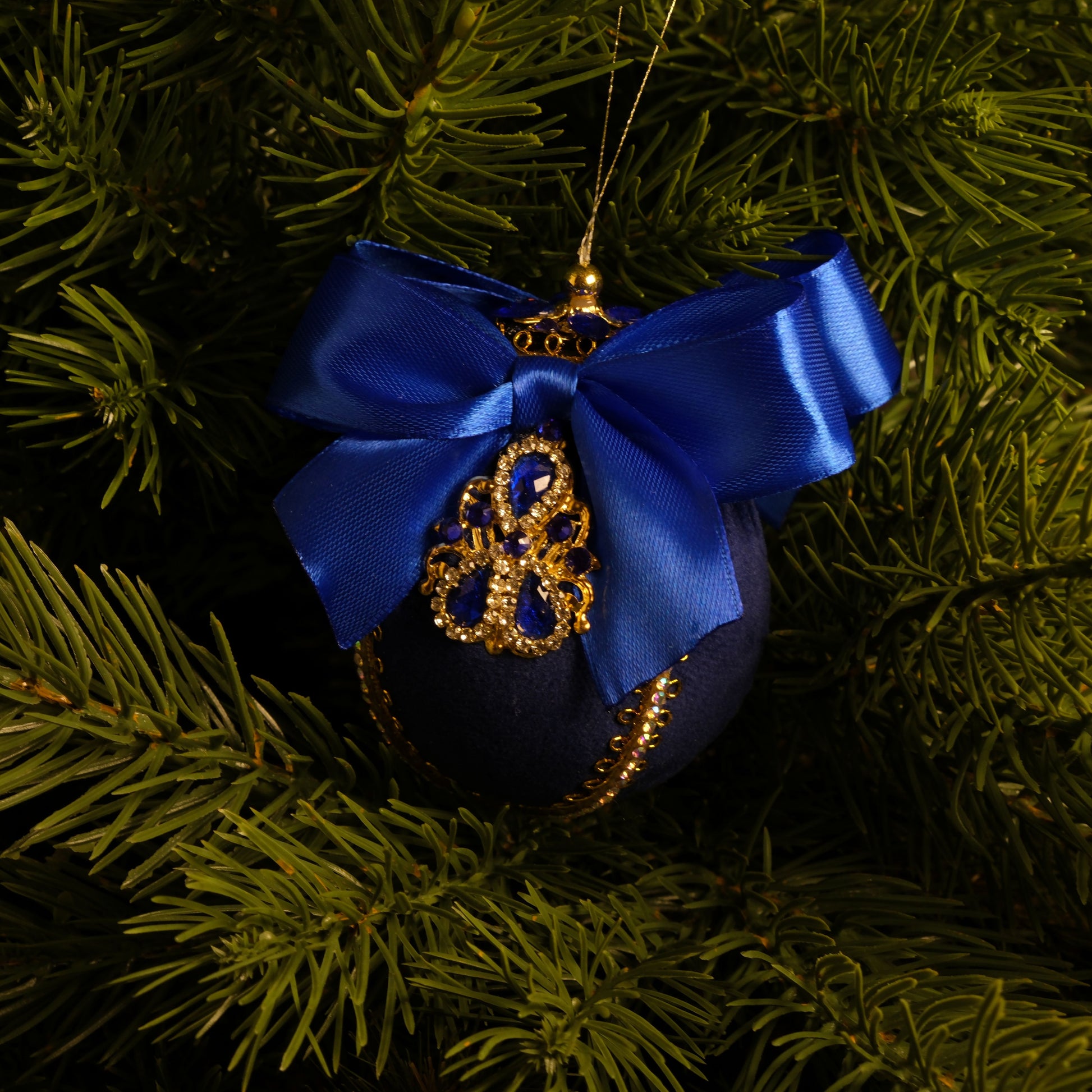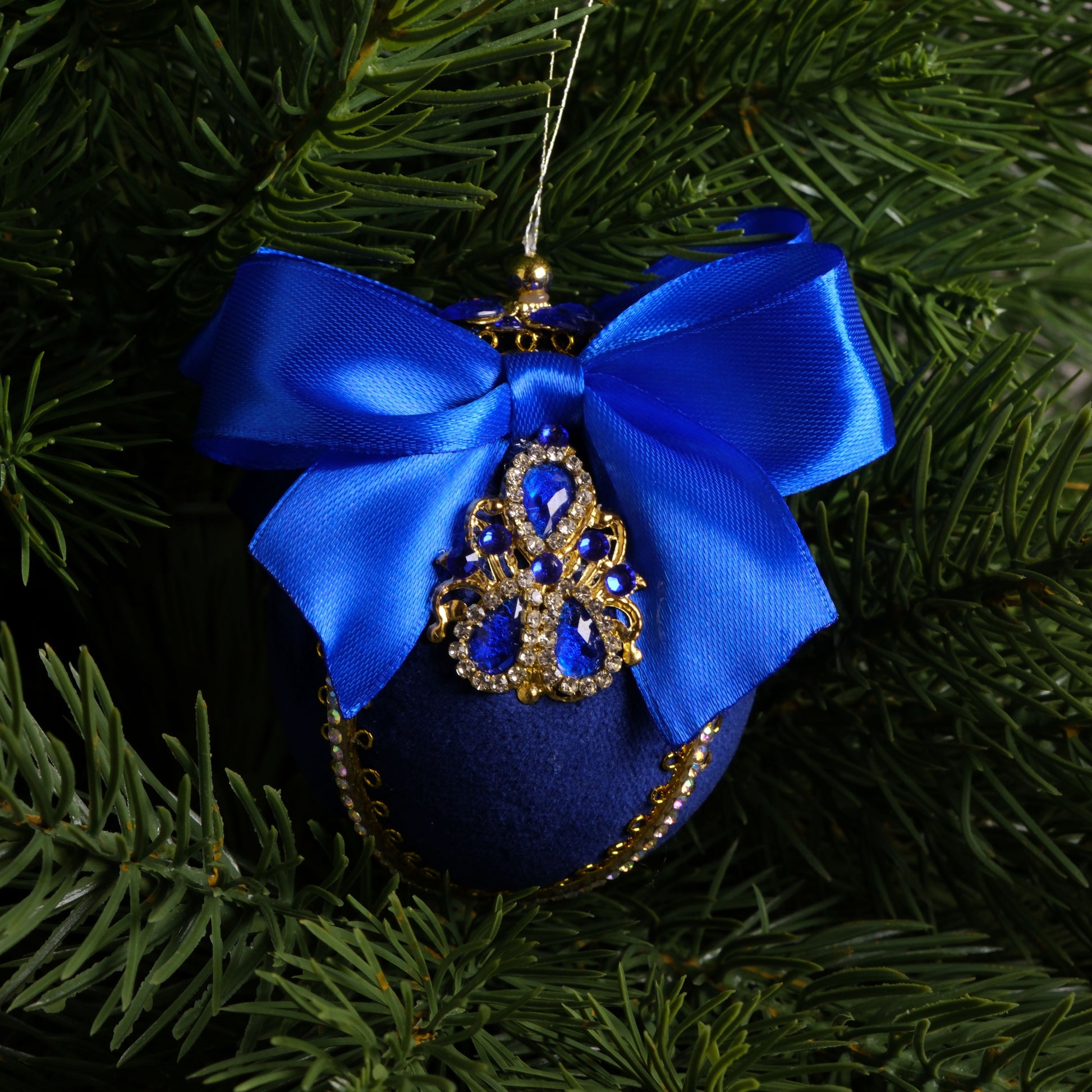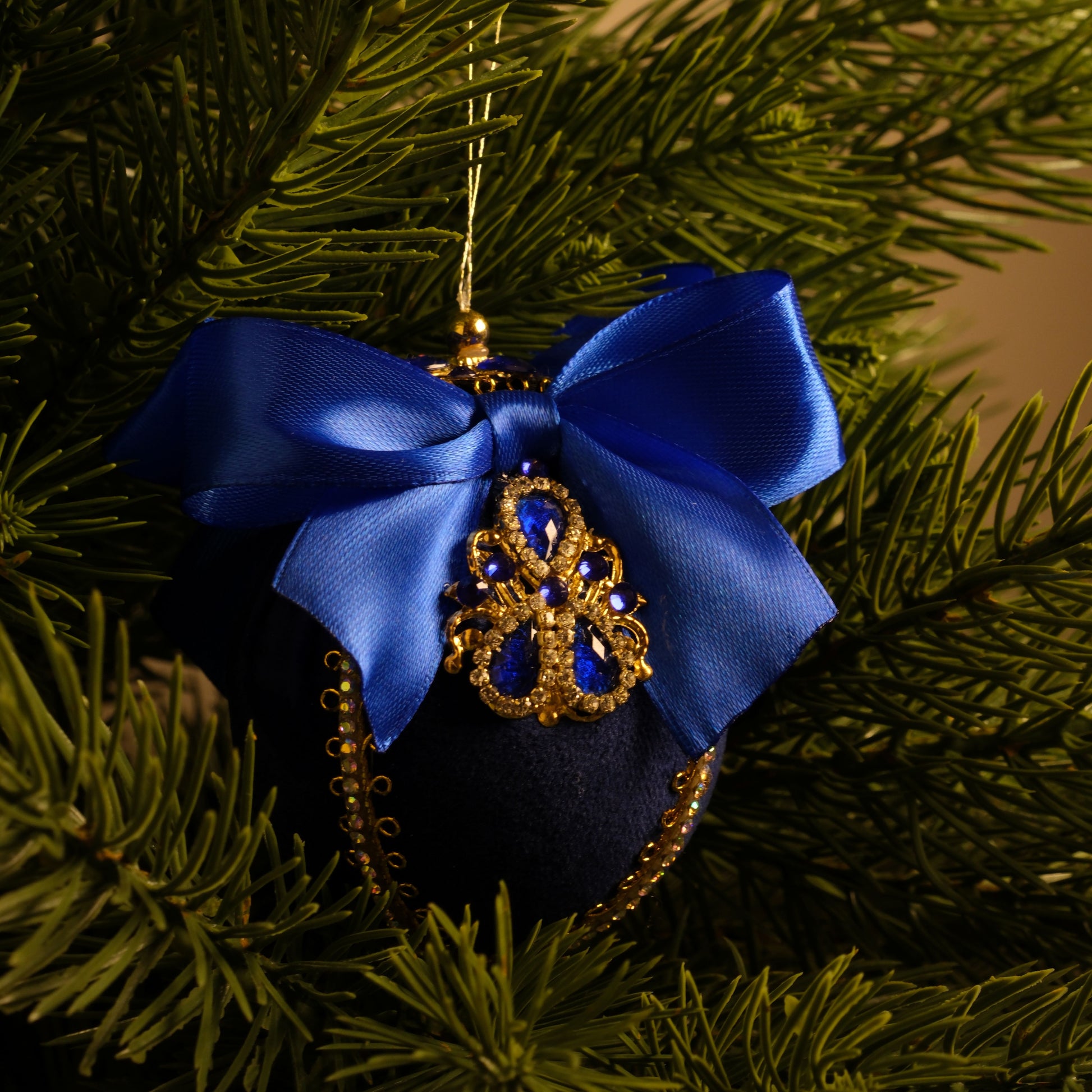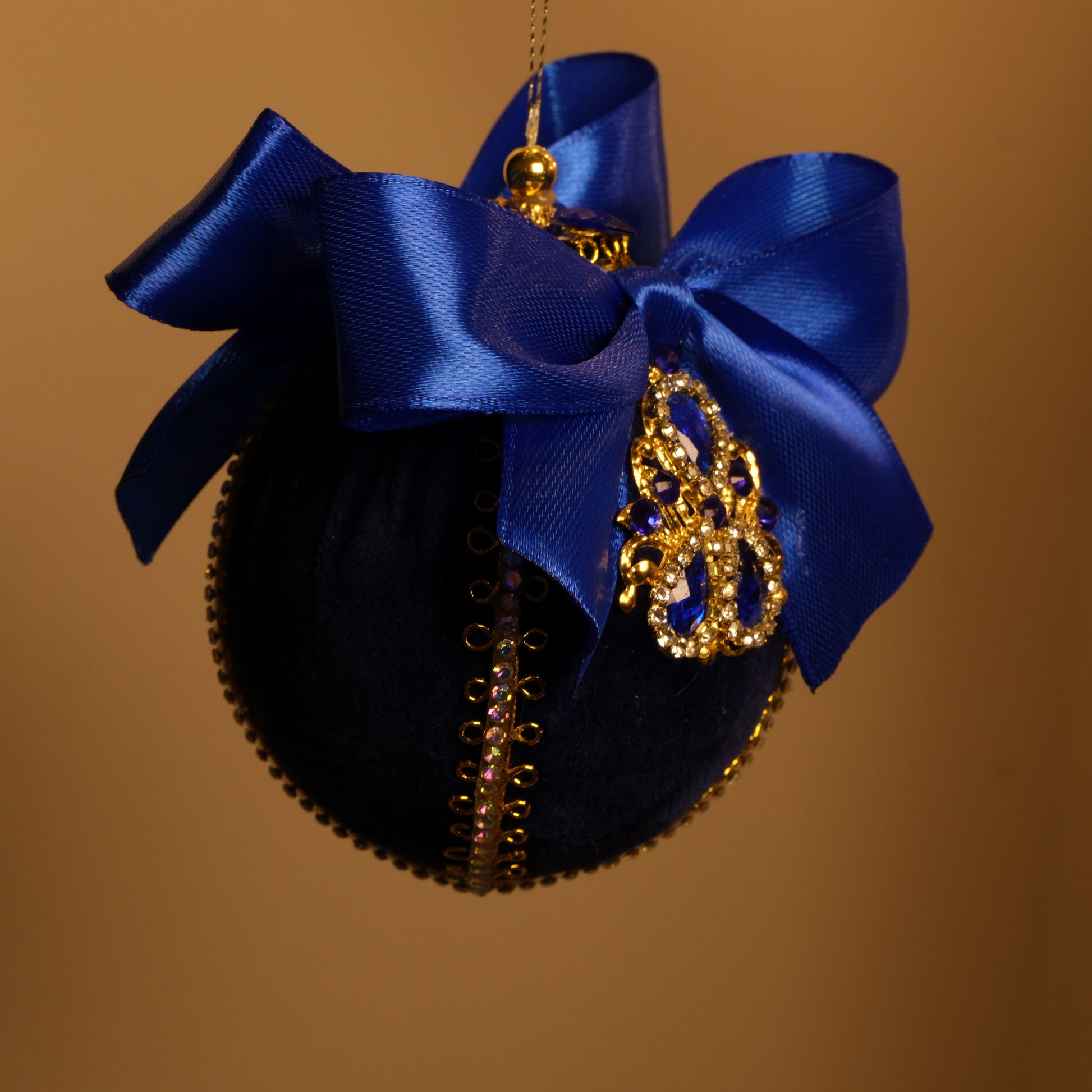 Veliūrinis mėlynos spalvos eglutės žaisliukas.