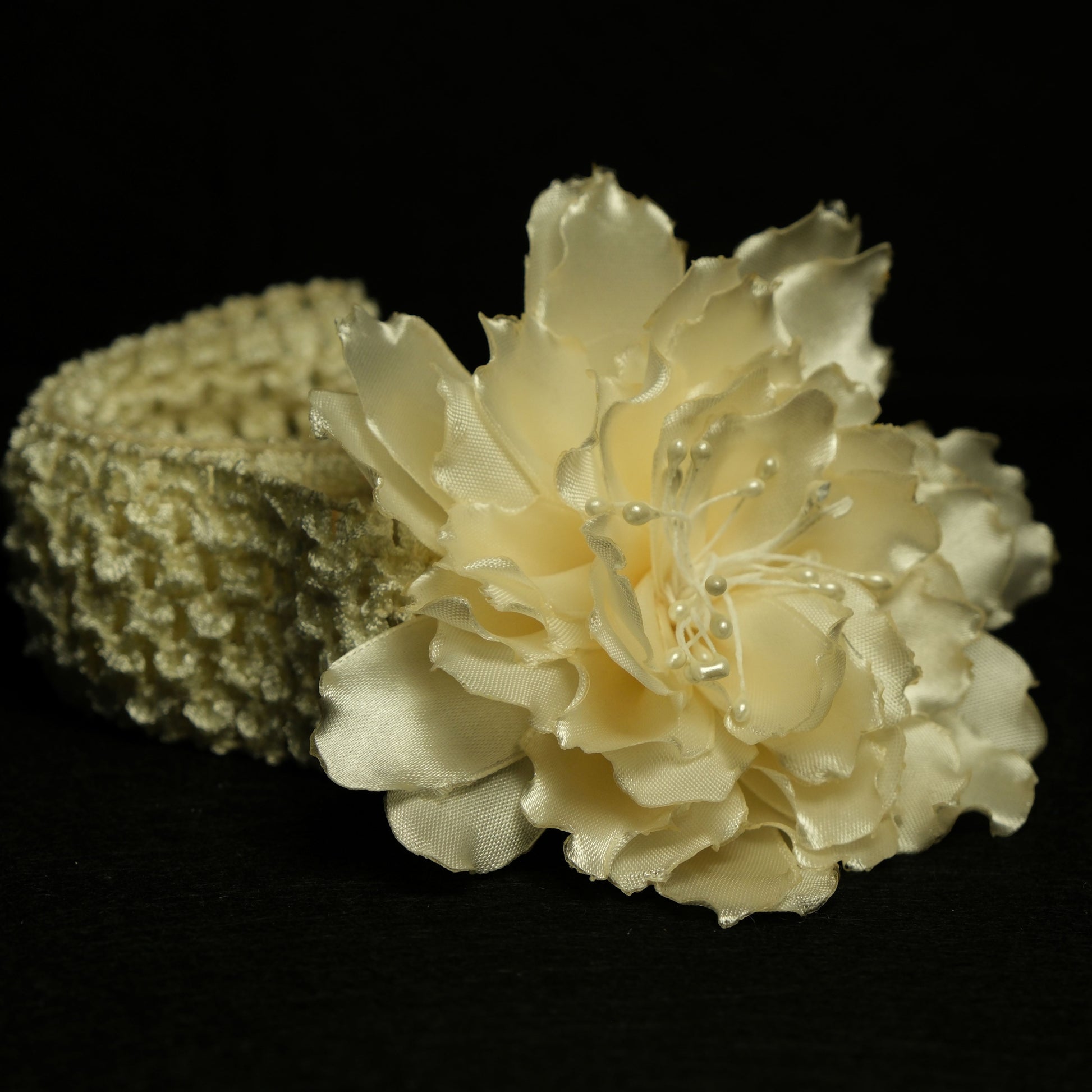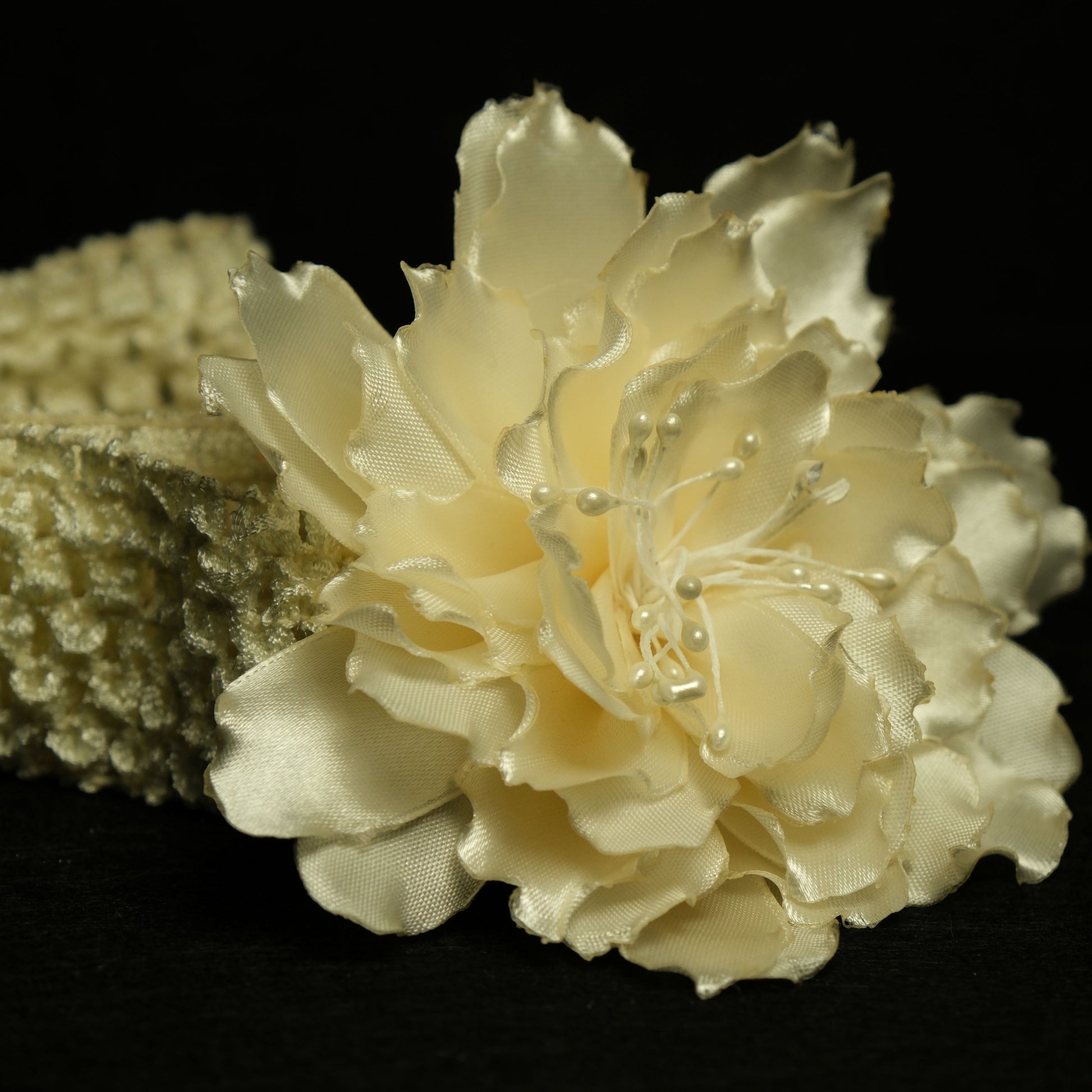 Gėlė pritvirtinta prie tamprios dekoratyvinės juostos