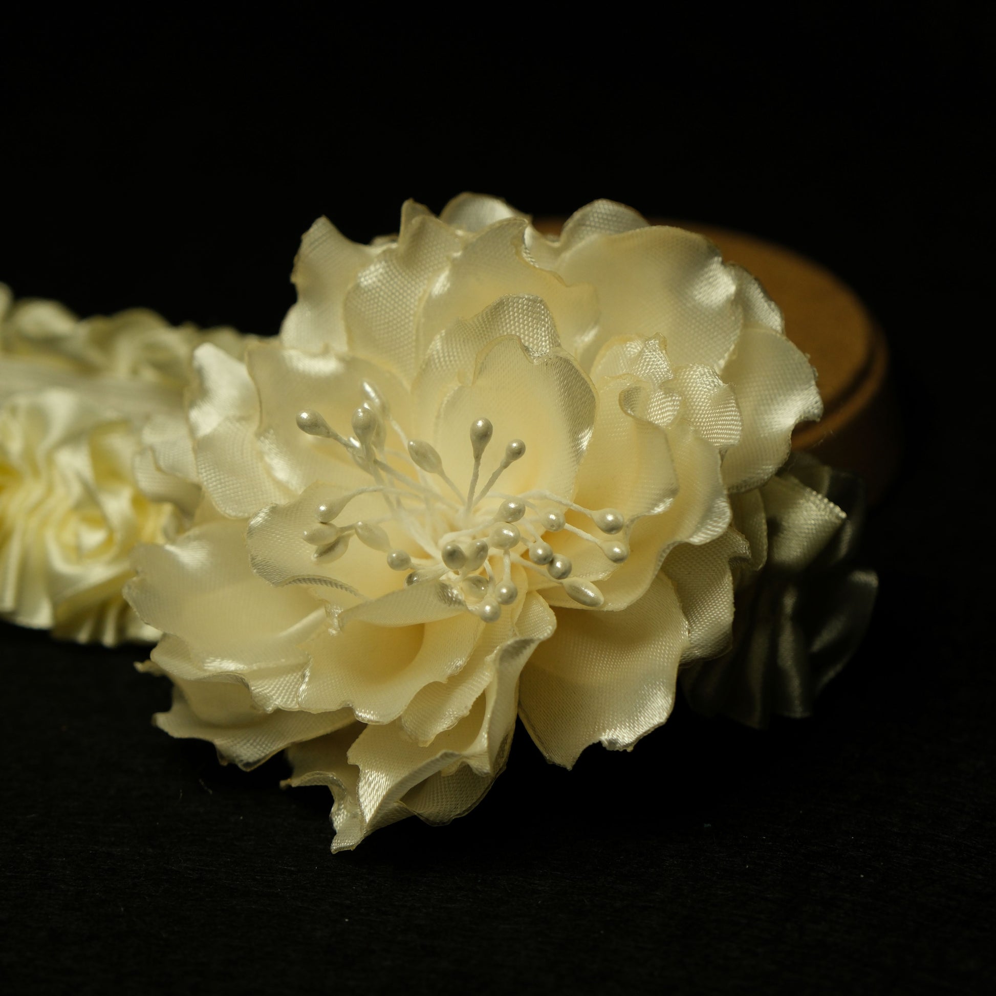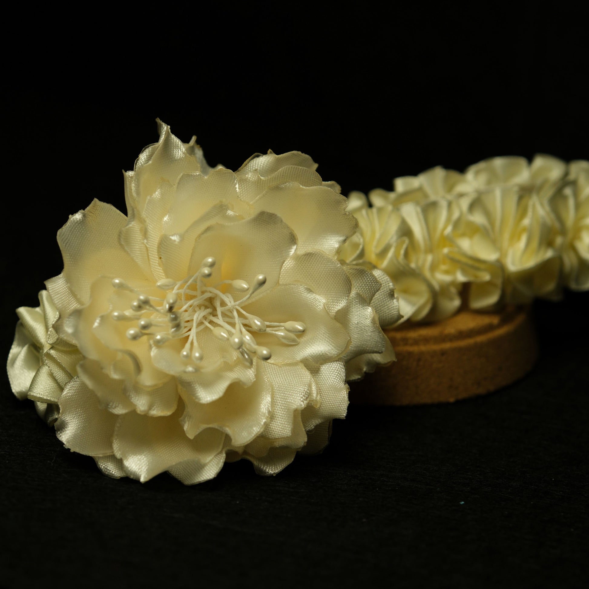 Gėlė pritvirtinta prie raukinuko pritvirtinto ant tamprios juostos